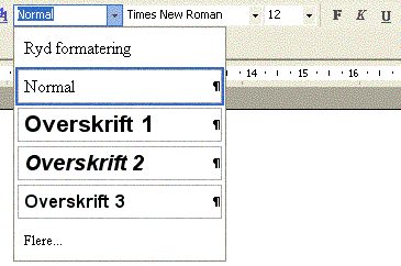 · I Værktøjslinjen Formatering klikkes på den sorte trekant til højre for
